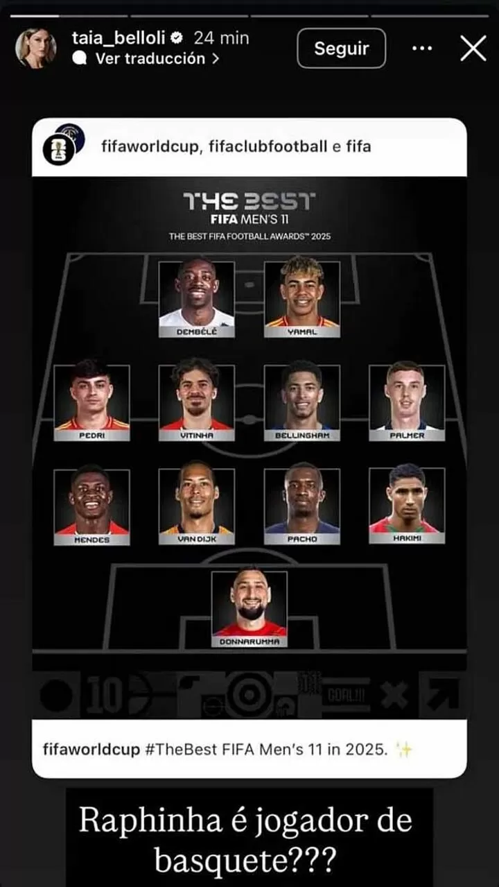 According to Portuguese outlet A Bola, she wrote in a now-deleted Instagram story: 'Is Raphinha a basketball player?'